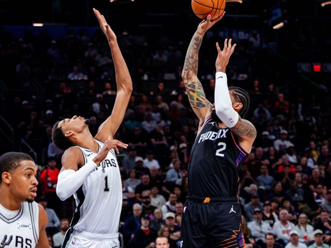 后半段理查兹继续军训哈珀,古德温底角轰三分,文班亚马这一点依旧没好机会,关键还早早3犯。节末阿伦和古德温继续下三分雨,文班亚马被犯规后,两队还出现一些小冲突,半场太阳70-52领先马刺。下半场开打,文班亚马三分依旧不中,随后运球突破还摔倒了,裁判也没吹。布克中距离和奥尼尔的三分球继续扩大分差,卡斯尔和巴恩斯带队艰难维持。后半段布克继续发力,他的中距离和突破,马刺确实挡不住。文班亚马不仅没手感,他的传球也屡屡被太阳队识破,马刺进攻陷入停滞。