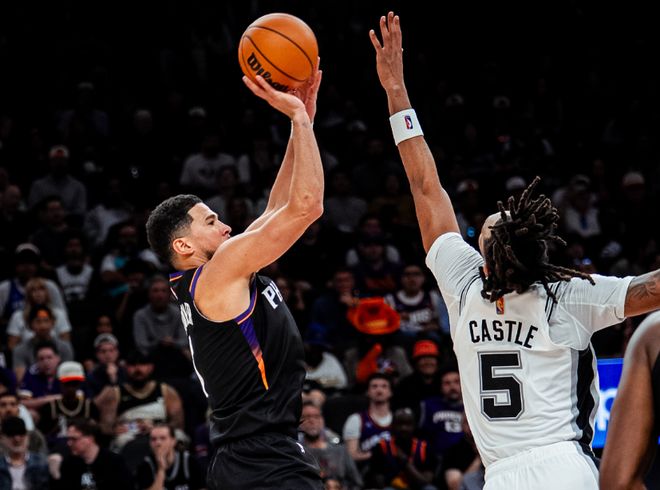但实话实说,马刺前5场比赛,除了热火之外,其他球队整体竞争力并不强,马刺还需要等待一些季后赛级别球队的考验。太阳开局很糟糕,2胜4负,杰伦格林因为腿筋伤势长时间缺席,布克虽然场均也有30分4.3篮板6.5助攻入账,但是随着二号得分点布鲁克斯倒下,布克身边缺少帮手。好消息是,杰伦格林已经从无法出战升级为出战成疑,按美媒分析,杰伦格林很可能在1周内迎来太阳生涯首秀。一场实力差距很悬殊的比赛,看起来没悬念,没想到马刺却被打花了,文班亚马也迎来生涯最低迷一战。